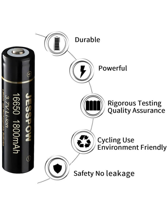 16650 Rechargeable Batteries W/ Button Top (2 Pack) For Bering
