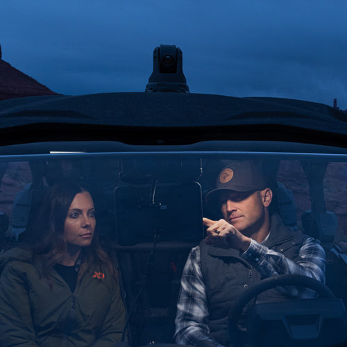 The Dark 30 Defiance is an innovative PTZ vehicle-mounted thermal camera for mobile scouting. Eliminate the need for handheld observation and overcome the limitations of thermal-blocking windshield and window glass with this roof-mounted camera, providing a full 360° scan from an elevated vantage point.